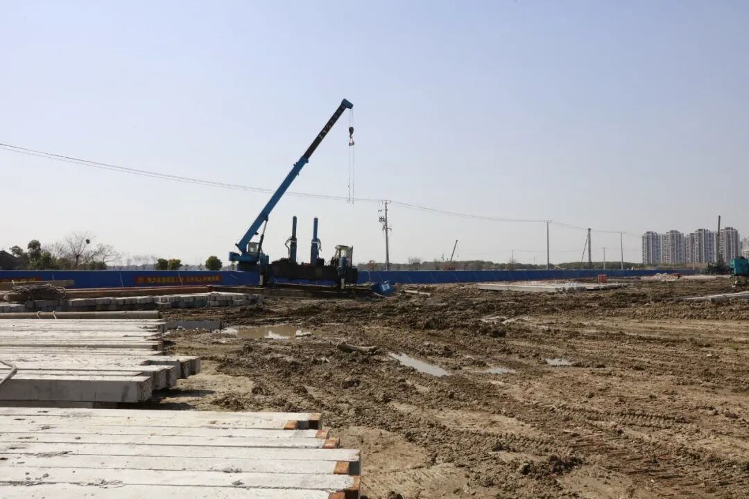 在位于外冈镇外钱公路附近的经三支路安置基地建设工地,施工人员正在现场有序作业,桩机和塔吊等大型设备也已进场施工。施工单位中铁四局现场负责人王进告诉小编:“目前项目的桩基施工已全面启动,预计4月下旬结束,随后进入地下施工阶段。”