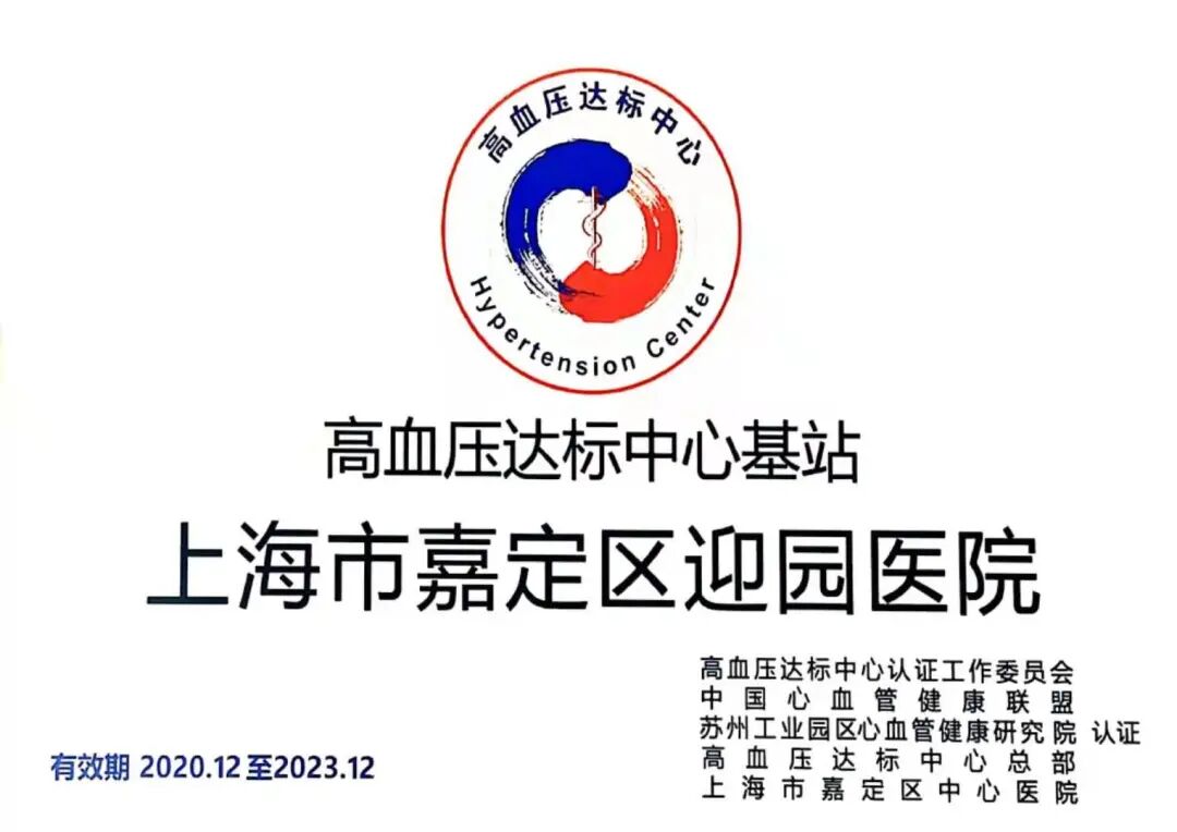 近日,在中国心血管健康联盟、高血压达标中心总部获悉,嘉定区迎园医院通过高血压达标中心第三批次认证,挂牌“国家高血压达标中心基站”。