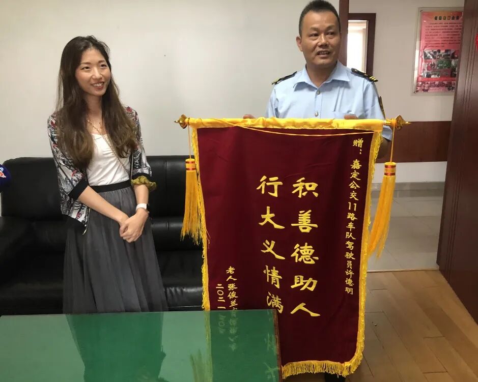“我们非常非常感谢许师傅的热心行为,也感谢嘉定公交培养出了这么优秀的职工”。为此张阿婆一家特意定制了一面印有“行大义情满,积善德助人”字样的锦旗送给徐德明。面对乘客的感谢,许德明如是说“将心比心,谁家遇到这事都会着急,我只是举手之劳。”