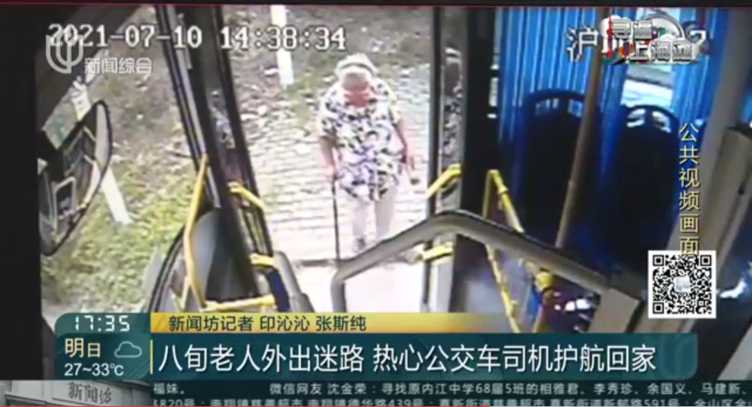 原来7月10日,华女士84岁的外婆张阿婆独自从家里出门,走到平城路车站乘上了嘉定11路。上车后,张阿婆既不刷交通卡也不投币举动异常,引起了驾驶员许德明的注意。当公交车到达终点站立昂路嘉旺路后,张阿婆下车后又上车,许德明便上前询问张阿婆是否需要帮助。