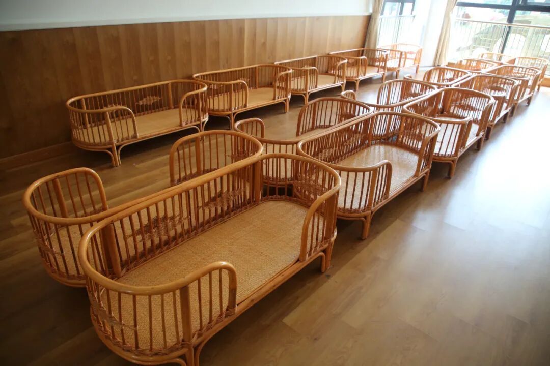 该幼儿园班级规模总计20个班,即将开启的新学期招收了7个小班和1个托班,共187名幼儿。王震介绍,由于托班的20名孩子年龄都在24个月到36个月之间,学校在教学用具和生活设施上也是动足脑筋。比如,设置了20张由竹编制作而成的摇篮式小床,带给他们“家”的感觉,也便于老师管理。