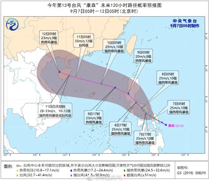 预计,“康森”将以每小时10-15公里的速度向西北方向移动,将于9日白天穿过菲律宾吕宋岛中部进入南海东部海面,尔后强度逐渐增强,向我国广东西部到海南东部一带沿海靠近。
