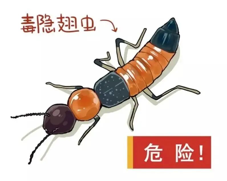 ③当隐翅虫落在身上时,千万不要拍打,应该小心吹走、抖落或使用纸巾等物品将其妥善处理,并避免皮肤直接接触到隐翅虫毒液。