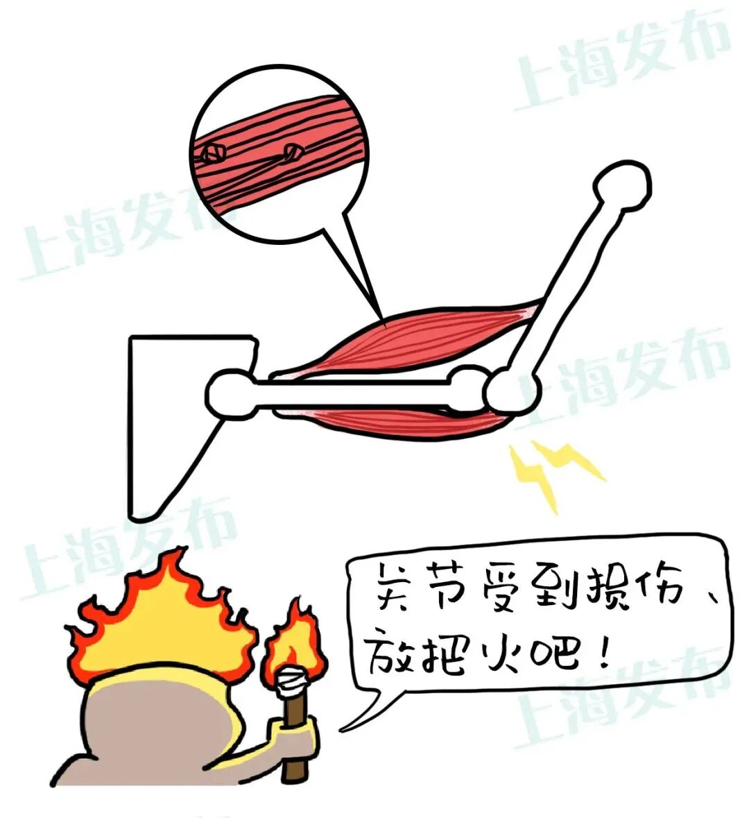 人体的肌肉和骨骼在日复一日的使用过程中,遇到各种损伤或慢性劳损,就会有一些瘀血等沉积下来。人体自带的修复系统为了让机体继续高效运转,“清洁工”(免疫细胞)会将它们包裹起来→转运→清除,再由负责修复的细胞来修复损伤。这个过程中也会有充血/水肿/大量的炎性因子聚集,所以叫做无菌性炎症。