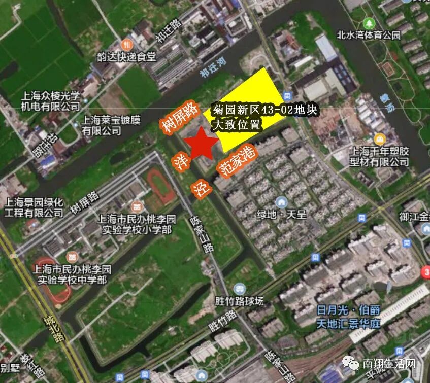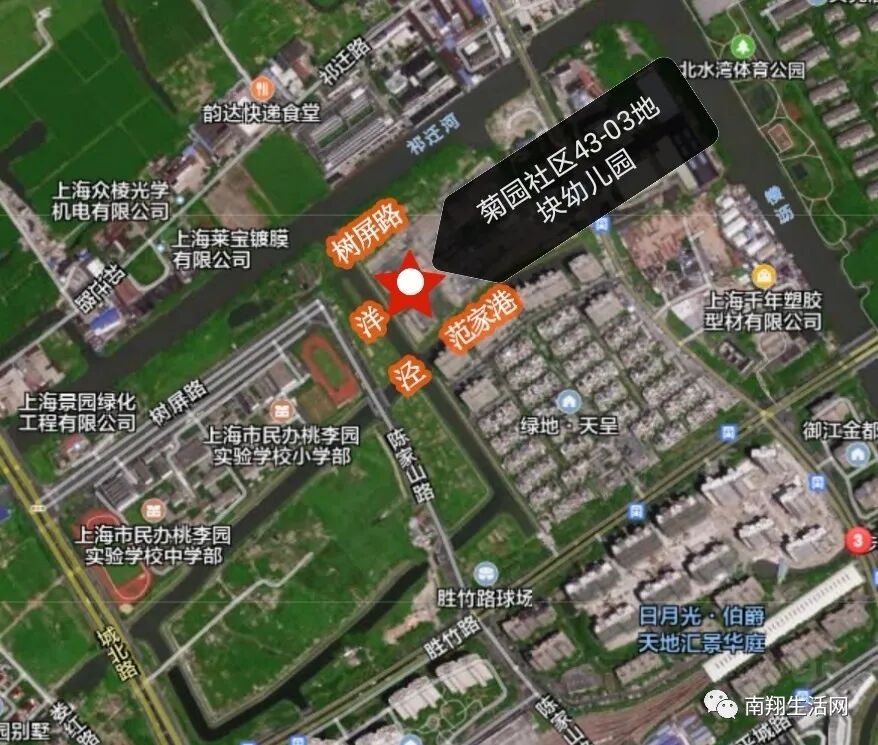 建设位置位于嘉定区菊园新区,东至基地边界,南至范家港,西至洋泾,北至树屏路。