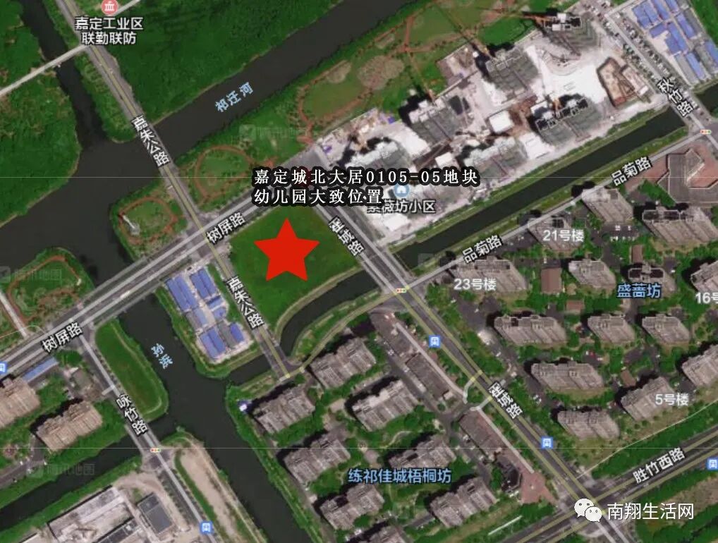 嘉定区城北大居0105-05地块幼儿园项目位于嘉定区霍城路与树屏路交界处。项目北至树屏路、东至霍城路,南临闵家港河流,西侧为待建社区服务设施用地。