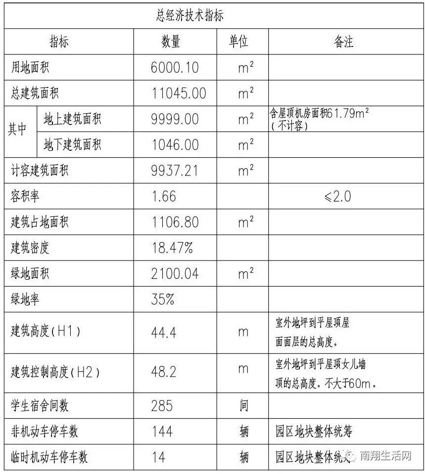 总建筑面积11045平方米(其中地下建筑面积1046平方米),计容建筑面积9937.21平方米。学生宿舍有285间。