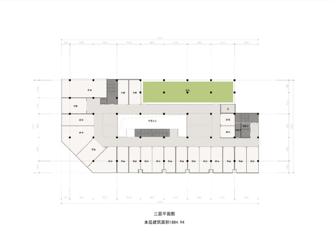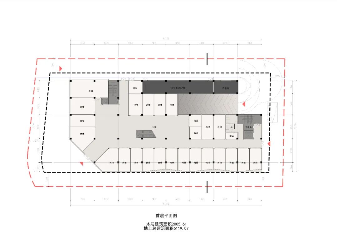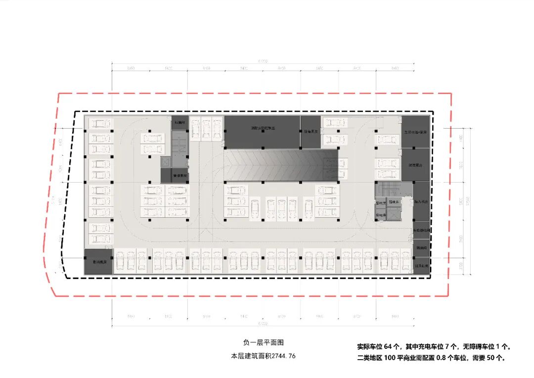 基地内设计一栋三层的商业楼,并设1层地下室。总建筑面积9036.77㎡;其中地上建筑面积6182.01㎡,地下建筑面积2854.76㎡。
