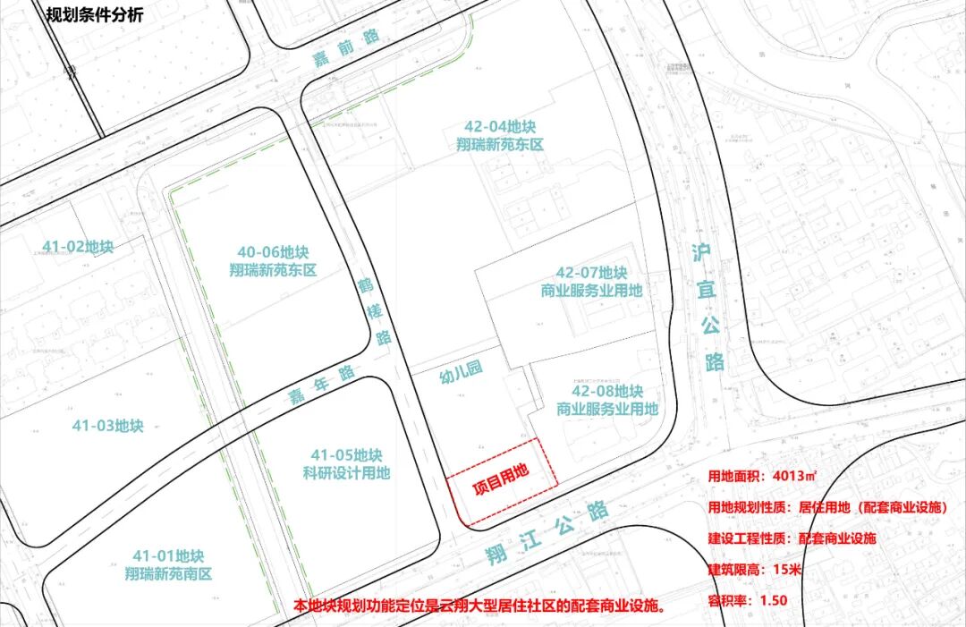 该项目定位为社区配套商业体。据了解,项目周边的翔瑞新苑是一个动迁小区,内有4个居住区,1万多名住户,其中老年居民较多。随着住宅小区的陆续交房,其周边配套设施不足的问题日渐凸显。“平时一般在周边小店买东西,距离最近的商业综合体步行要20多分钟。”翔瑞新苑一名居民表示,沿街店铺虽然能满足日常需求,但种类有限,而距离最近的商业综合体超过1公里,对老年居民来说尤为不便。