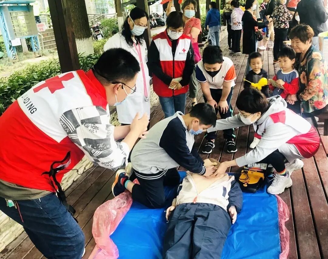 为了让更多民众掌握急救技能,医院组织红十字救护员师资走进学校、社区、企事业单位等开展多形式的急救培训,努力提高群众自救互救能力。培训涵盖心肺复苏、公共场所自动体外除颤仪使用、气道异物梗阻、创伤止血包扎、骨折固定搬运等知识与技能,内容丰富、形式多样。