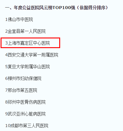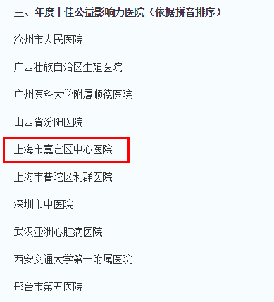 今日,2020年度中国医院公益风云榜正式揭晓,嘉定区中心医院荣获《年度公益医院风云榜》第三名、《年度十佳公益影响力医院》两项殊荣。