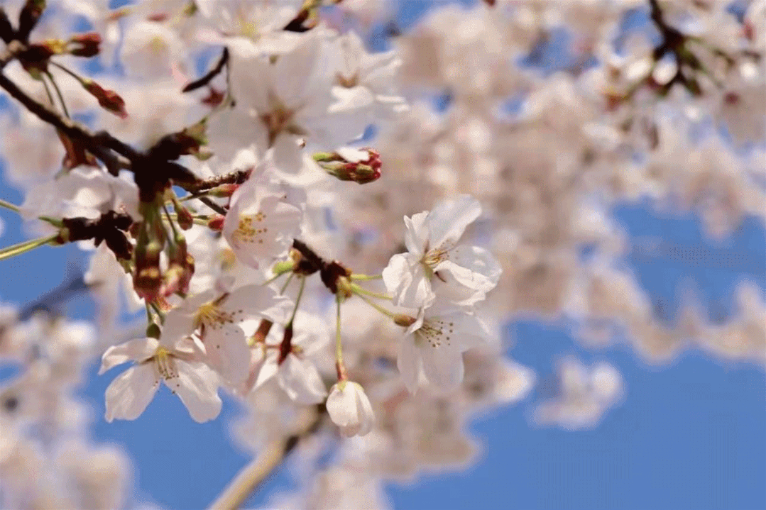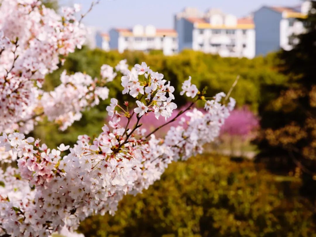 春风拂面,落樱飞舞。这两天,华亭人家内的樱花竞相吐露芬芳,迎来盛花期。