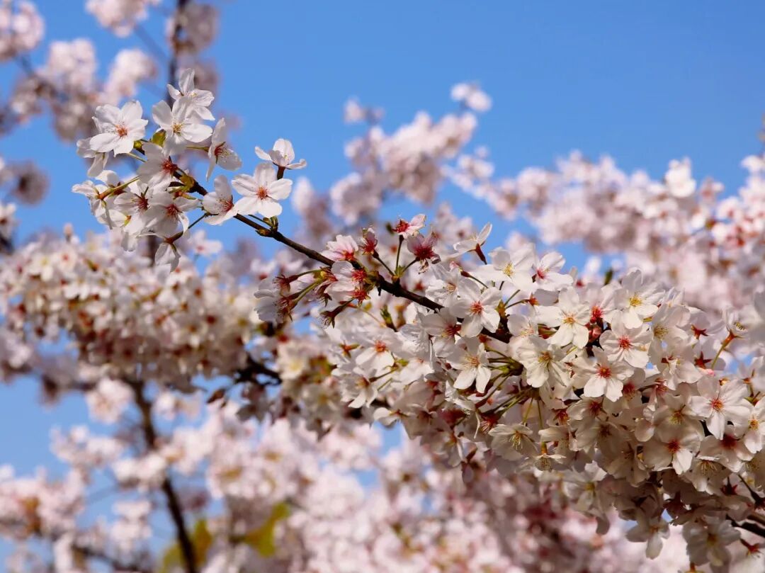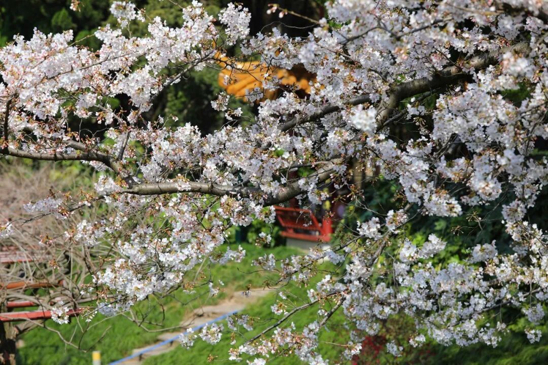 菊园樱花大道上种了128株染井吉野,此花有一边开放一边凋谢的特性,所以无论晴雨,市民们都可以欣赏到“樱花如霰晓莺啼”的美景。