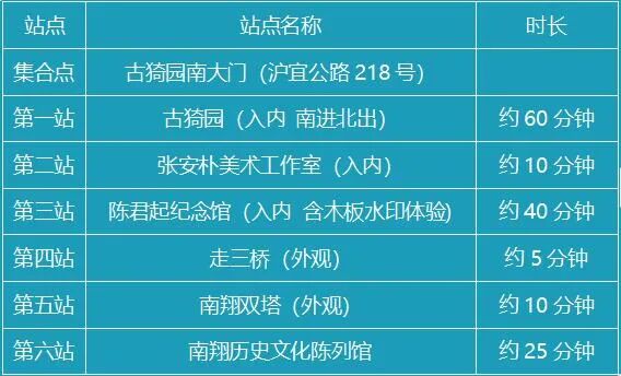 行程亮点↓   古猗园:原名“猗园”,取自《诗经》中“绿竹猗猗”一句。园艺布局自明代起就以戏鹅池为中心。水置于园林,以水为主,相映园景。古猗园一年四季皆是风景,是市民游园赏花的好去处。   南翔老街:至今仍保留着清末民初“银南翔”的历史风貌:粉墙黛瓦、屋舍参差林立,大小商铺鳞次栉比;小桥、流水、花园、长廊林林总总。五代的双塔、梁代的古井、檀园、云翔寺、南翔历史文化陈列馆、南翔小笼馒头文化体验馆等一批旅游资源均为古镇南翔历史、商贸、文化的缩影。   木版水印:木版水印是指在木质的雕版上,用水质的墨和色来印刷,游客可现场体验,通过清版、上纸、刷纸和打墨等步骤,感受非遗技艺的魅力。   行程安排↓