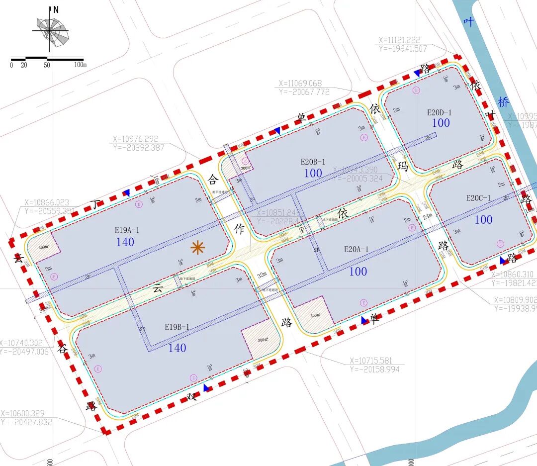 本次调整对象位于嘉定新城核心区内,为伊宁路以南JDC1-1901单元的E19A、E19B、E20A、E20B、E20C、E20D街坊。规划面积19.45公顷。具体范围东至依叶路、北至丁单路、南至双单路、西至云谷路。