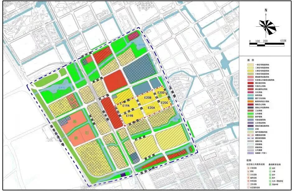 用地性质:为形成复合功能的活力街区,规划范围内E19A-1、E19B-1、E20A-1、E20B-1、E20C-1地块用地性质均为商住混合用地;E20D-1地块用地性质为商住和基础教育设施混合用地。