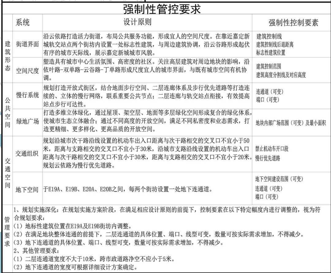 开发强度:为集约利用土地,提高轨交站点周边集聚度,提升地块开发强度,其中,E19B-1地块容积率由2.32提升至2.45,E20A-1容积率由1.6提升至2.3,E20B-1容积率由1.6提升至2.35,E20C-1容积率由1.6提升至2.8,E20D-1容积率由1.6提升至2.4。