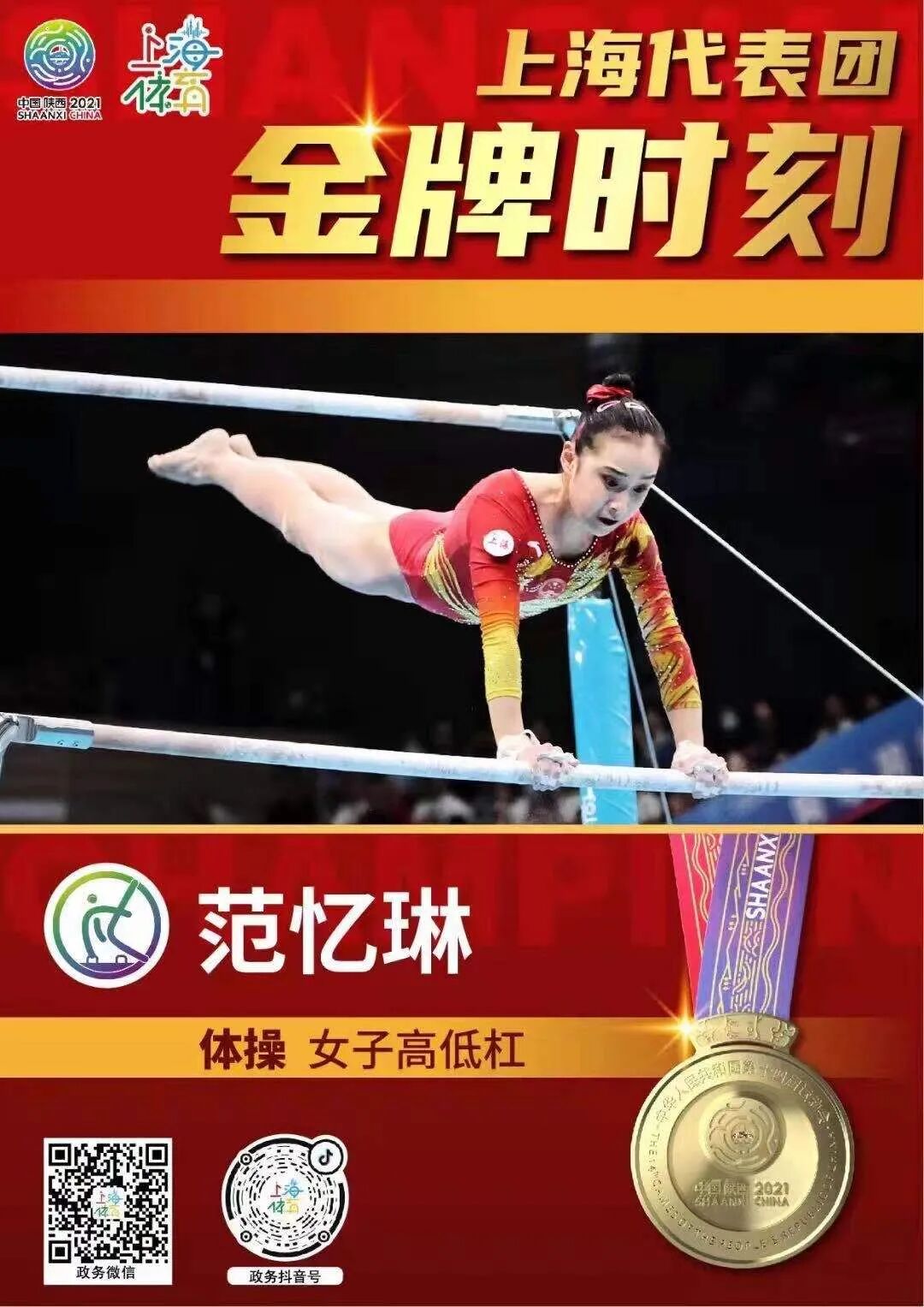 【快讯】嘉定小囡范忆琳蝉联全运会高低杠冠军!