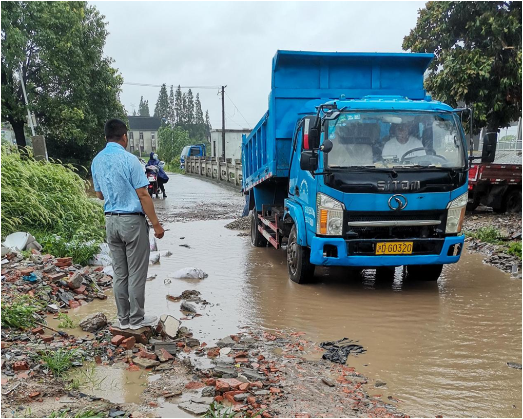今天清晨,徐行镇曹王村的一条村宅道路因积水严重影响周边村民出行。接到反映,曹王村村委会火速组织人员运送了50吨石子前往抢修。