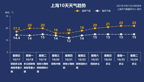 总体来看,未来一周,上海气温以偏低为主,体感偏凉。