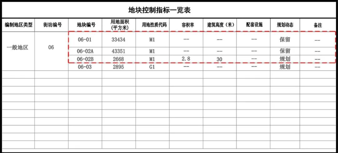 开发强度和建设规模方面 06-02B地块容积率由批准控规的2.0调整为2.8,调整后新增工业建筑面积约0.21平方米。   规划动态方面 06-01、06-02A地块的规划动态由批准控规的在代建调整为保留。