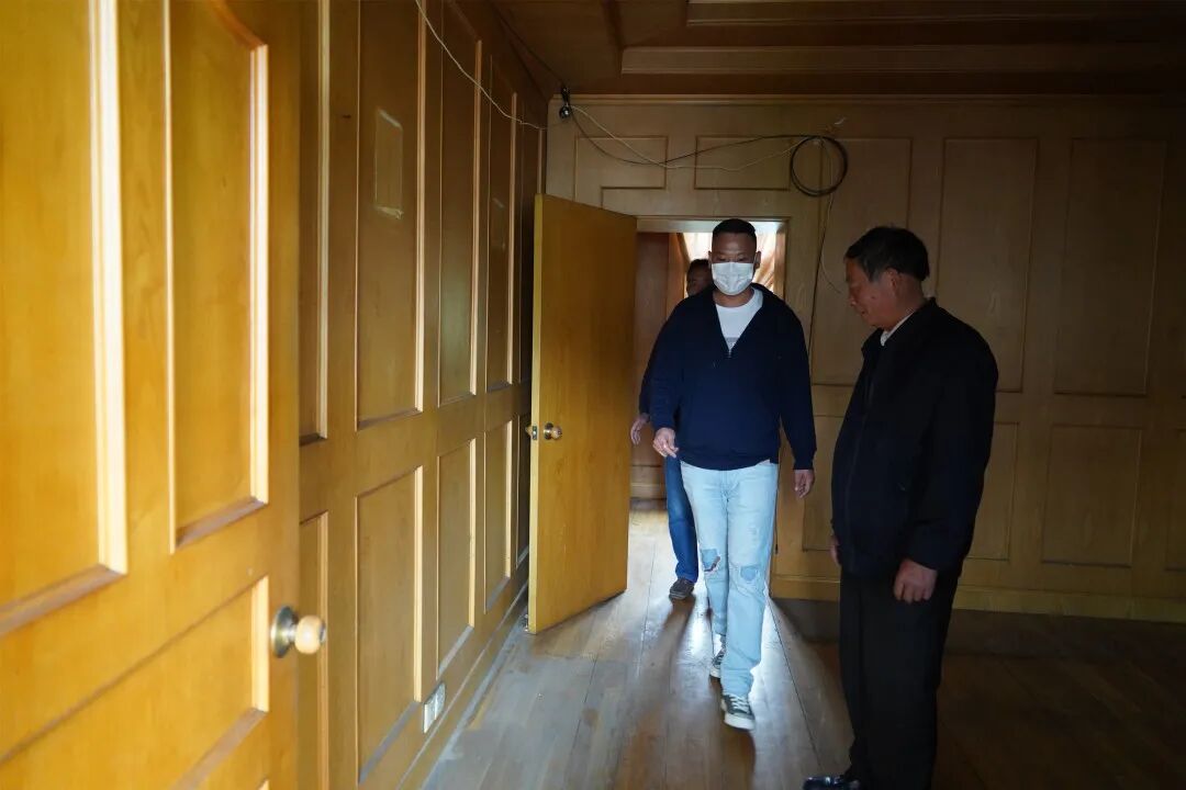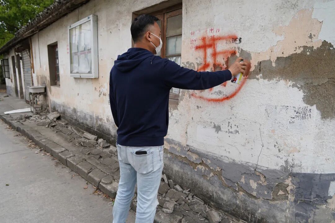 工作人员在两层的老房子里巡视,最后,出门在李国民家的老宅上喷上了“拆”,这意味着,老房子终于结束了它的使命。