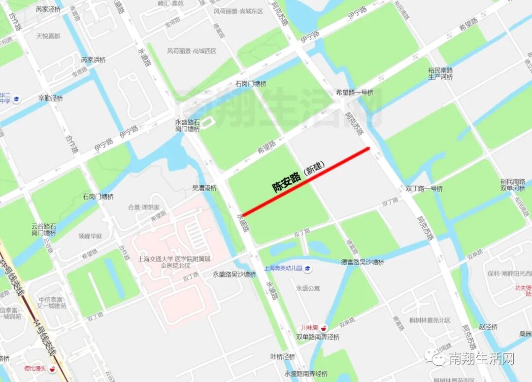 为了让大家看的更加直观,南翔生活网对陈安路新建道路进行了标注。