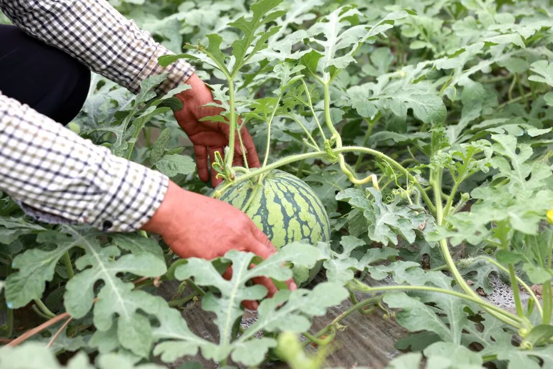 “这个品种的瓜,皮薄瓤红、口感甜脆,非常受本地市场青睐。”种植户老方介绍,为了确保西瓜品质,种植使用的是有机肥,人工进行授粉,“这样种出来的瓜才好吃,皮薄、肉质脆甜。”
