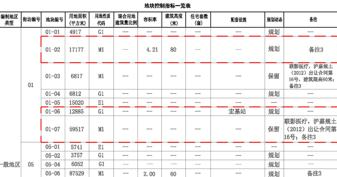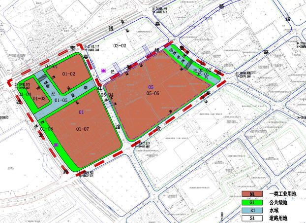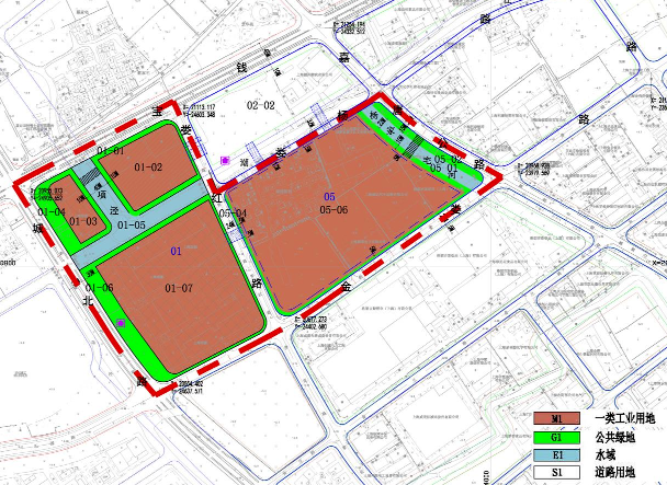 01-07地块:用地性质仍为一类工业用地(M1),用地面积由59314平方米调整为59517平方米;   01-06地块:用地性质仍为公共绿地(G1),用地面积由13088平方米调整为12885平方米。