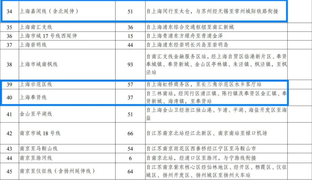 ——市域(郊)铁路营业里程约1000公里,上海大都市圈以及南京、杭州、合肥、宁波都市圈形成0.5—1小时通勤交通圈。