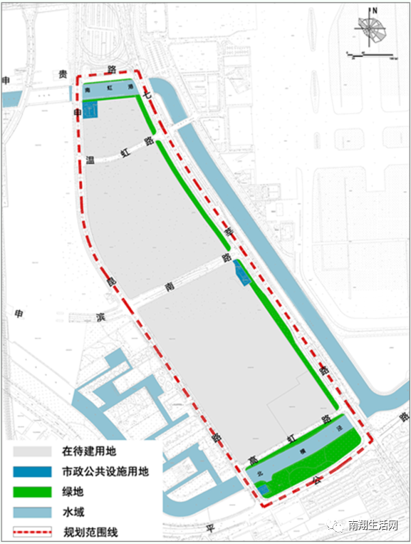 (2)以TOD为发展导向,围绕轨道交通站点(嘉闵线迎宾三路站(暂名))集聚城市功能,重点布局商务办公、商业服务和公寓式酒店,外围地区布局绿地和开放空间,打造三生融合发展的商务社区。