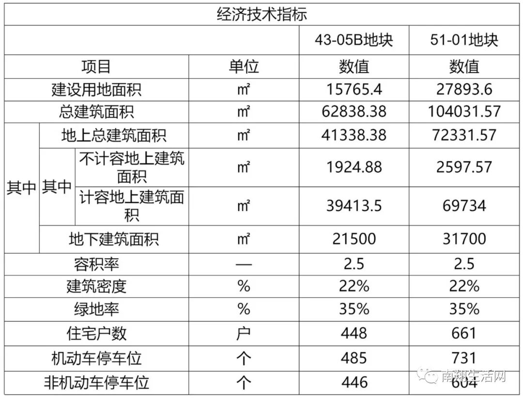 其中43-05B地块共建住宅448户,机动车停车位485个;51-01地块共建住宅661户,机动车停车位731个。