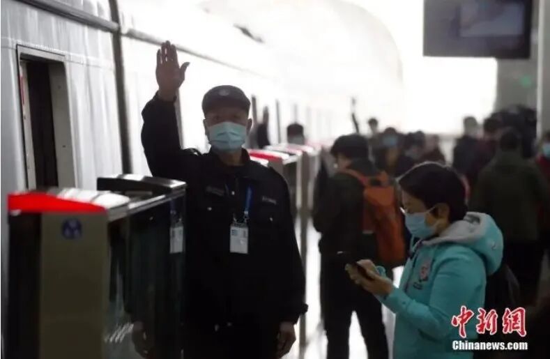 ▲ 资料图:北京地铁昌平线沙河高教园站的工作人员做出发车前的确认手势