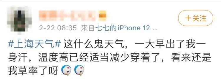 - 2021年的第53天 -嘉定明日天气:多云 11℃/6℃  今天出门, 是不是被热了一脸? 今天徐家汇的最高气温达到26.2℃,是2月下旬的同期历史第二…