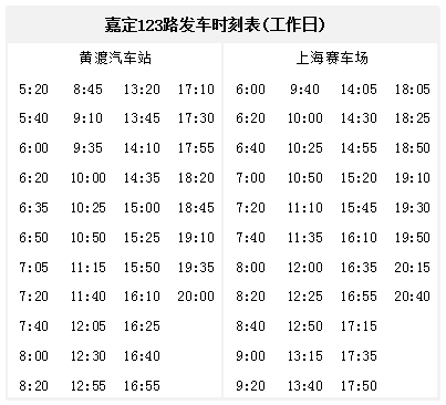 自2021年8月9日起,嘉定123路调整工作日发车时刻表,调整后时刻表如下。
