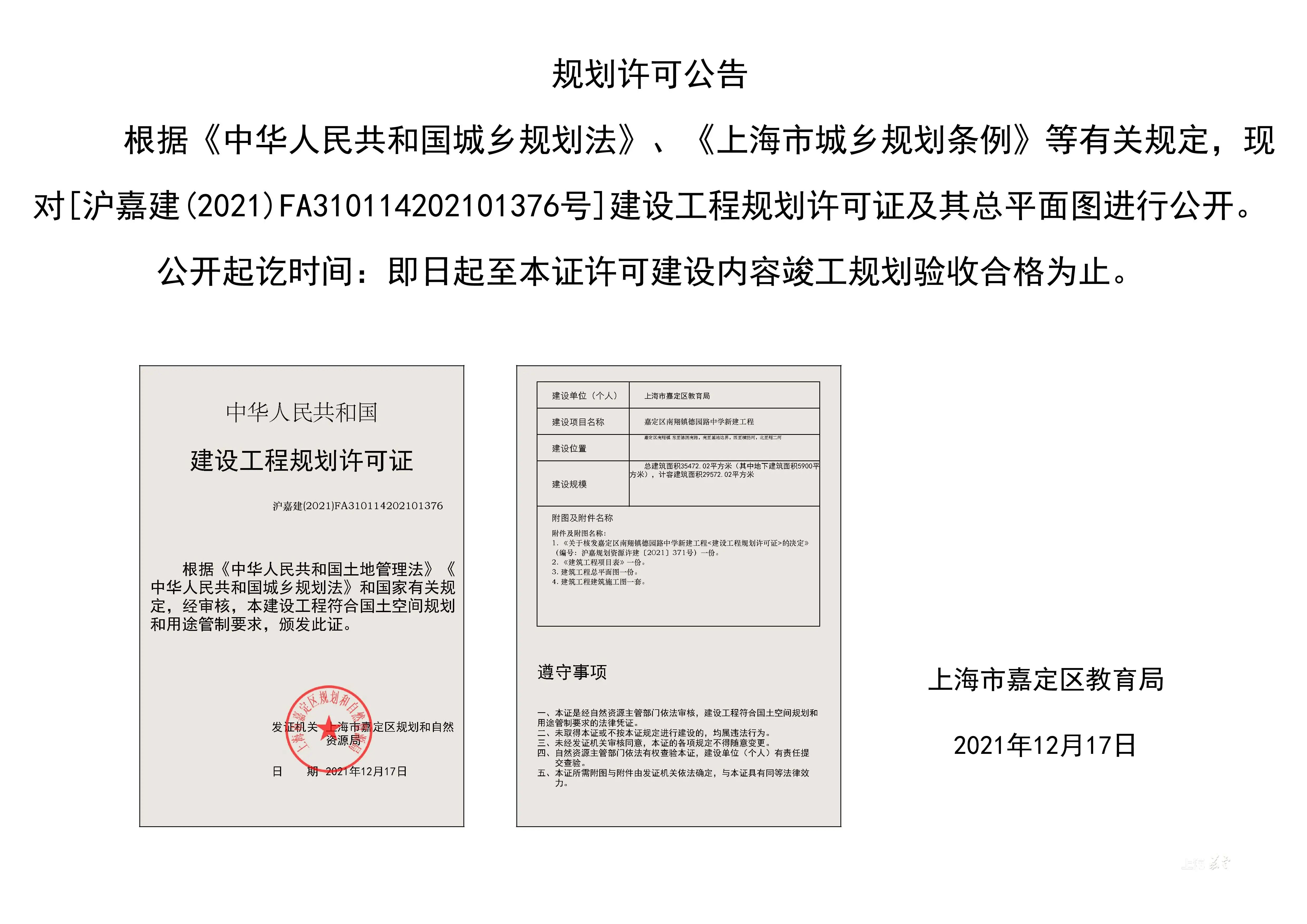 - 2021年的第355天 -嘉定明日天气:晴  4℃/-1℃南翔生活网小编从嘉定规资局获悉位于嘉定南翔的一所幼儿园和一所中学在昨日同日获建工规许可 这两所学校…