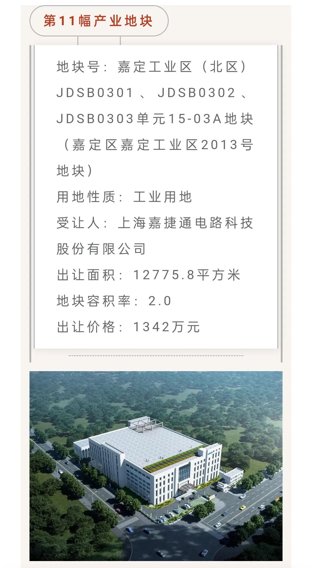 6月23-24日,嘉定区第11幅、12幅、13幅产业地块在嘉定区金沙路68号顺利成交。