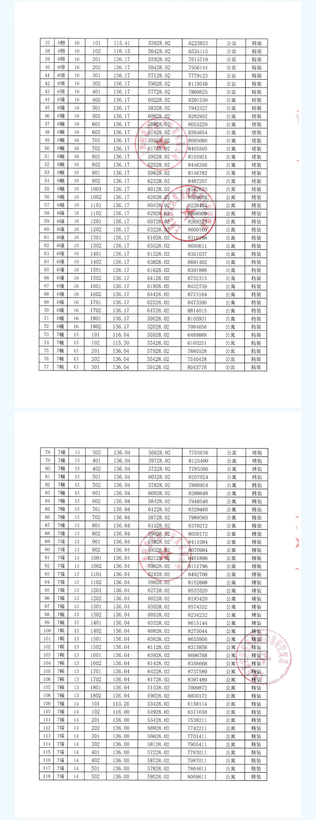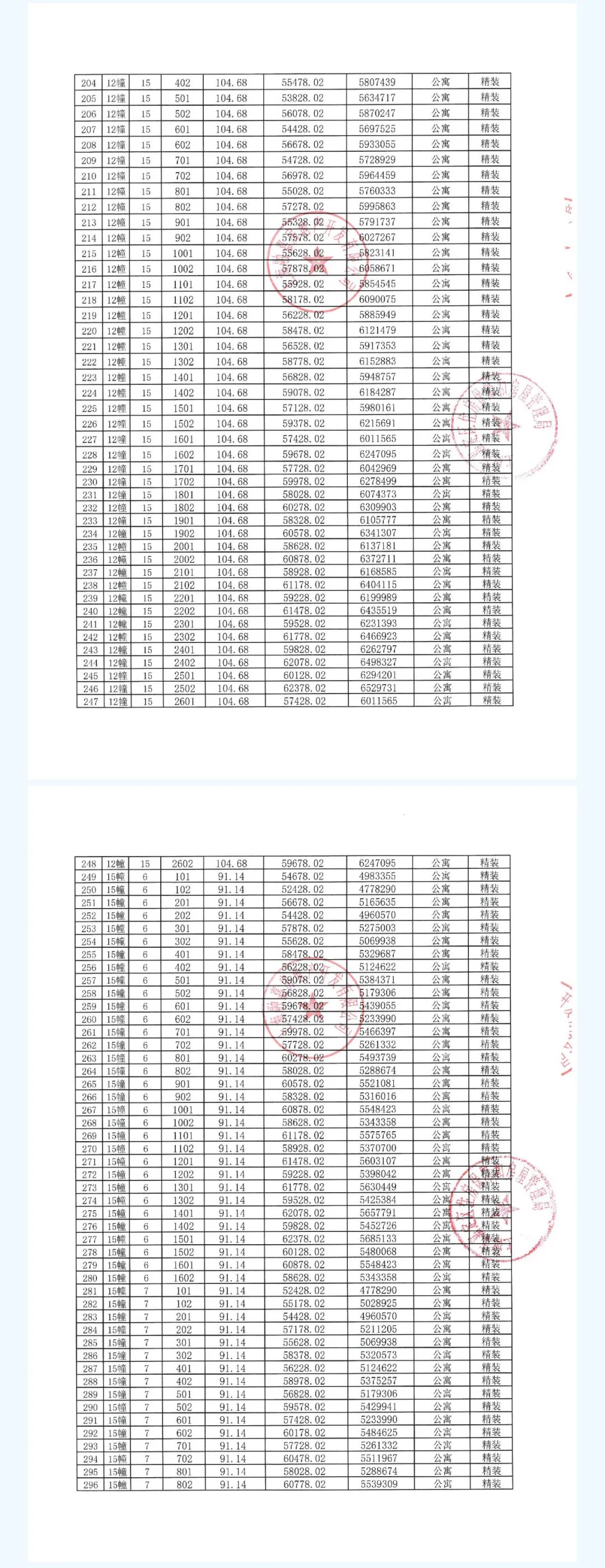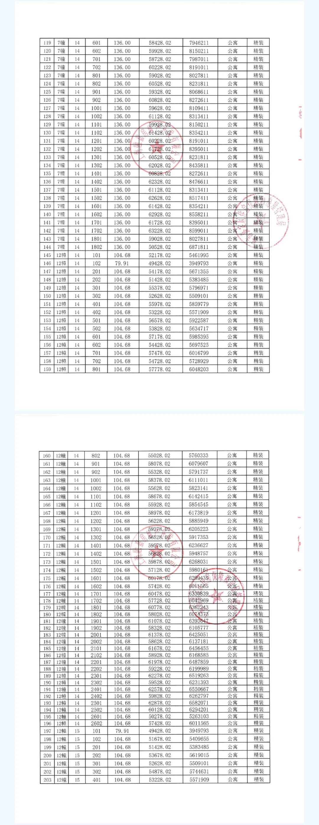 一房一价表