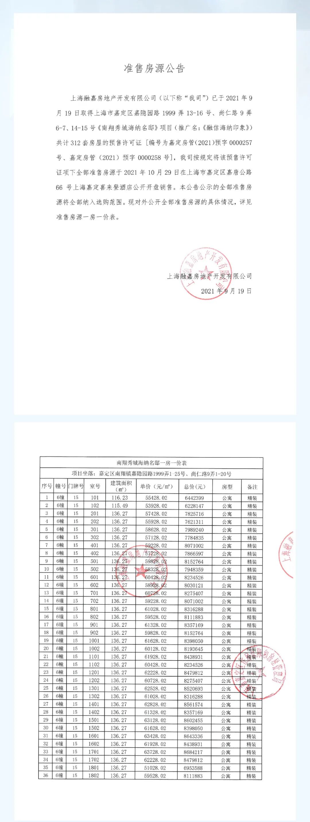 【快讯】南翔印象城旁重量级楼盘一房一价公示!9月23日认购,均价5.9万!