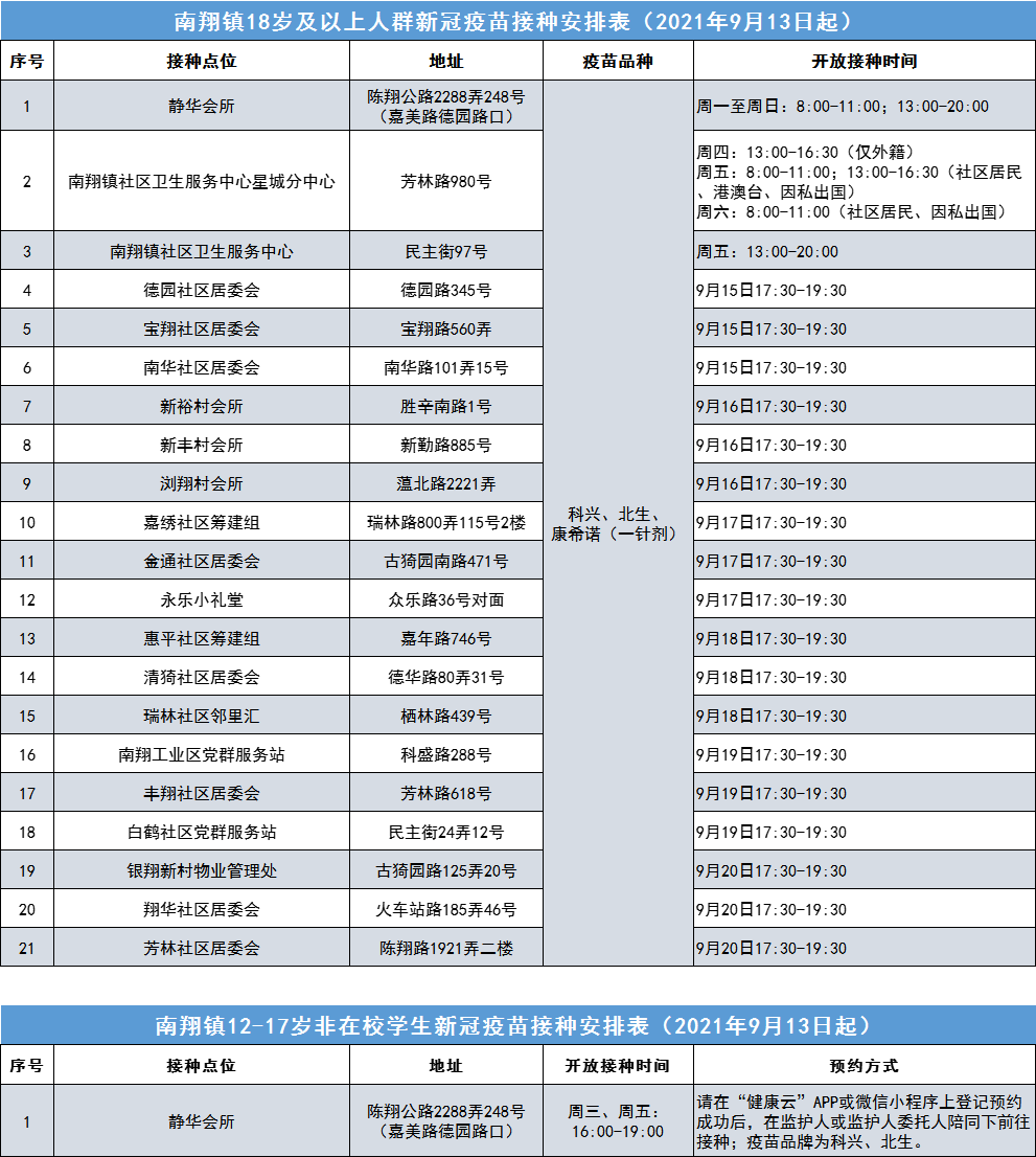 【快讯】南翔镇最新新冠疫苗接种安排~