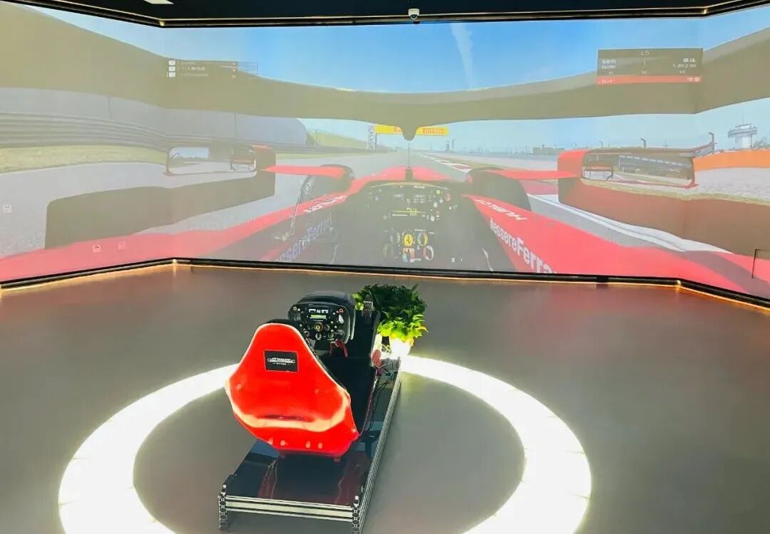 竞速实验室配备了宽比例全方位环绕式LED显示屏,能够完全模拟车手在赛车内的视觉效果,而全方位环绕音响效果和仿真方向盘、换挡、刹车等操作系统,更是为体验者营造了逼真的F1赛车驾驶环境。