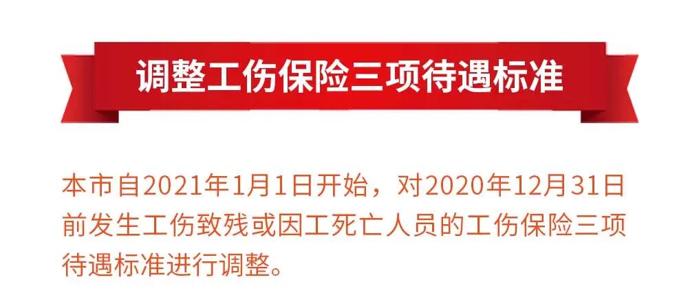 本市自2021年1月1日开始,对2020年12月31日前发生工伤致残或因工死亡人员的工伤保险三项待遇标准进行调整。
