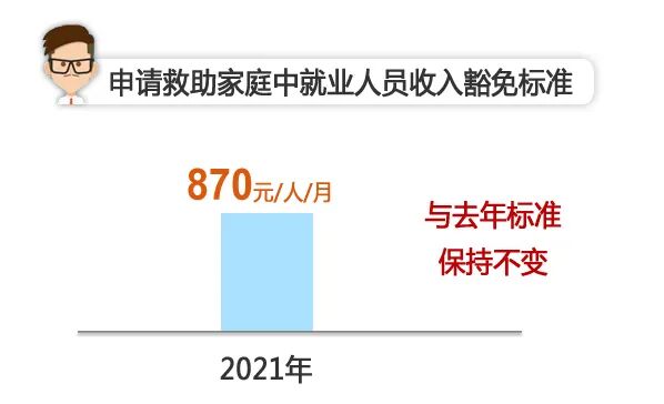 申请救助家庭中就业人员收入豁免标准为每人每月870元,与去年标准保持不变。
