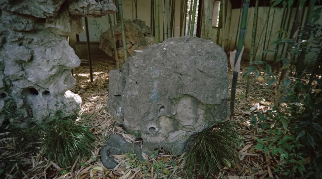 3、【名石.米汁囊】米汁囊是一座奇石,位于屏山底部。每逢阴雨天,这座石面就有水珠溢出,色如米汁,上刻有隶书“米汁囊”三字。抗战爆发后,为防止这块名石落入敌手,人们用石灰涂掉了米汁囊上的字,将它隐藏在假山群中,藏匿了半个多世纪,直到2001年才重见天日。