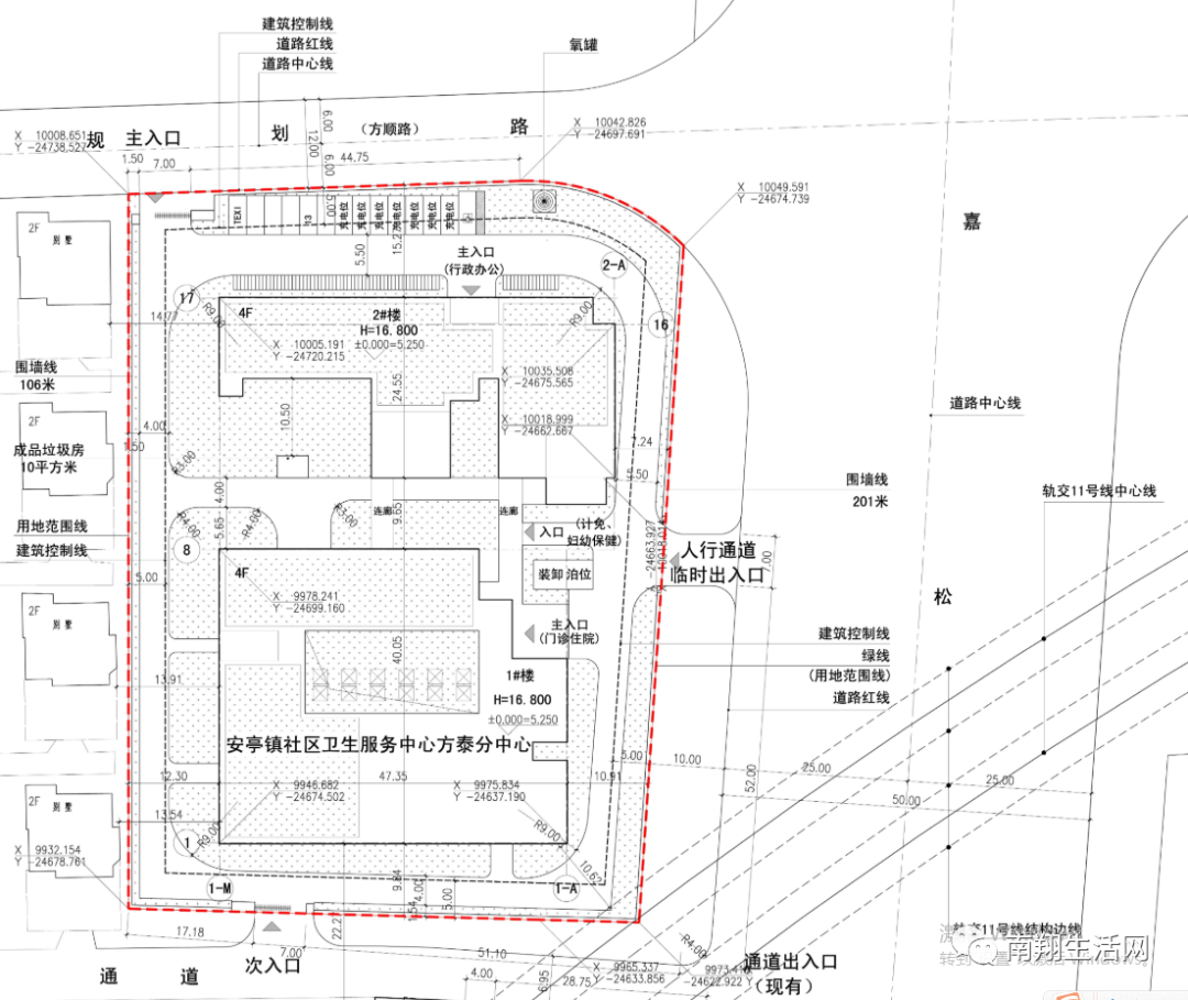 上海市嘉定区安亭镇社区卫生服务中心方泰分中心迁建工程基地东至嘉松北路、南至基地边界、西至基地边界,北至方顺路。   大致画出了迁建方位图↓