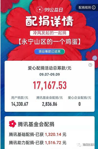 在过去的12个年头,“世界有爱”永宁助学,通过社区居民自发组织的义拍活动,累计筹款320818.53元,并通过“99公益日”进行配捐,定向捐赠给丽江市永宁爱心帮扶中心。   因为考虑聚集性活动的安全因素,世界有爱搬砖组未按计划在2021年99公益日前召集开展义拍活动,通过前期爱心人士筹集的22000元,为“永宁山区的一个鸡蛋”项目筹得17167.53元(达到预期筹款目标),为“助力滇西北乡村教师”项目筹得9348.36元(未达预期筹款目标)。