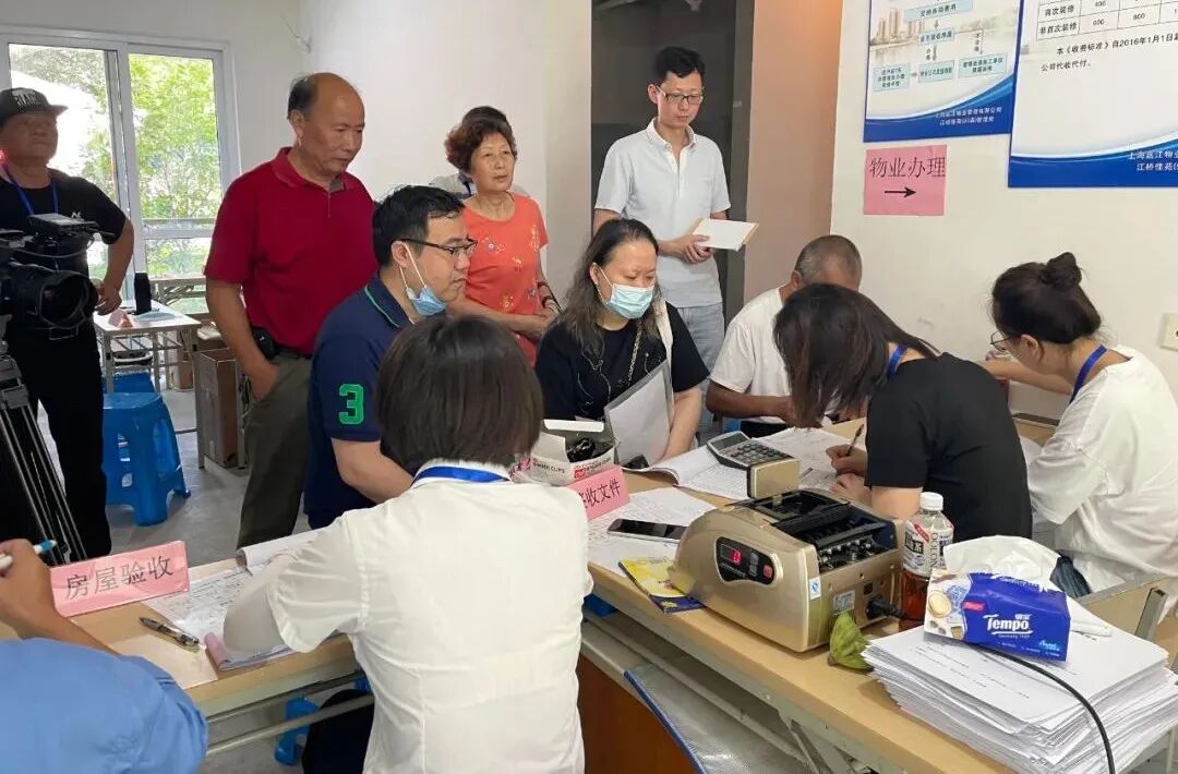 今早7点多,小编来到华江公路90弄江桥佳苑二期小区,虽然距离交房还有一段时间,但门口已经有不少村民在物业服务中心等候。村民吴永林激动地说:“我今天特别开心!这个房子是我父亲的,我已经第二次动迁了!”