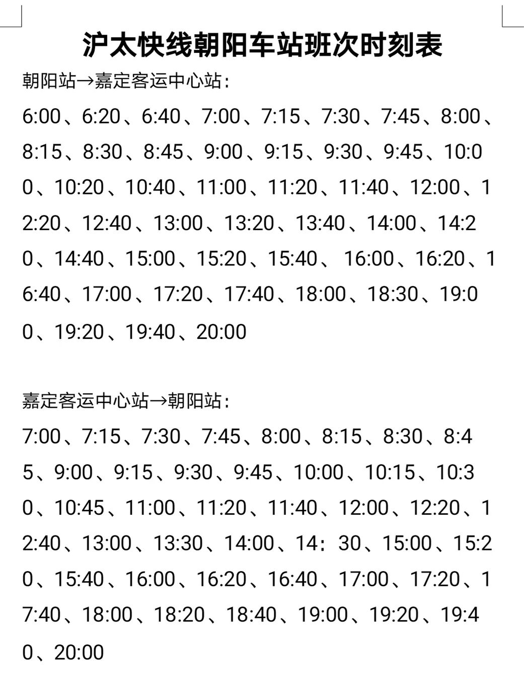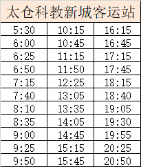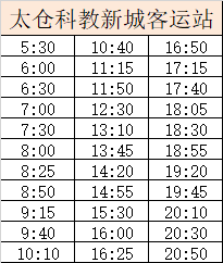 浏河客运站发班:6:00、6:20、7:00、7:30、8:00、8:40、9:20、10:00、10:45、11:50、12:35、13:45、14:30、15:10、15:50、16:30、17:10、17:40