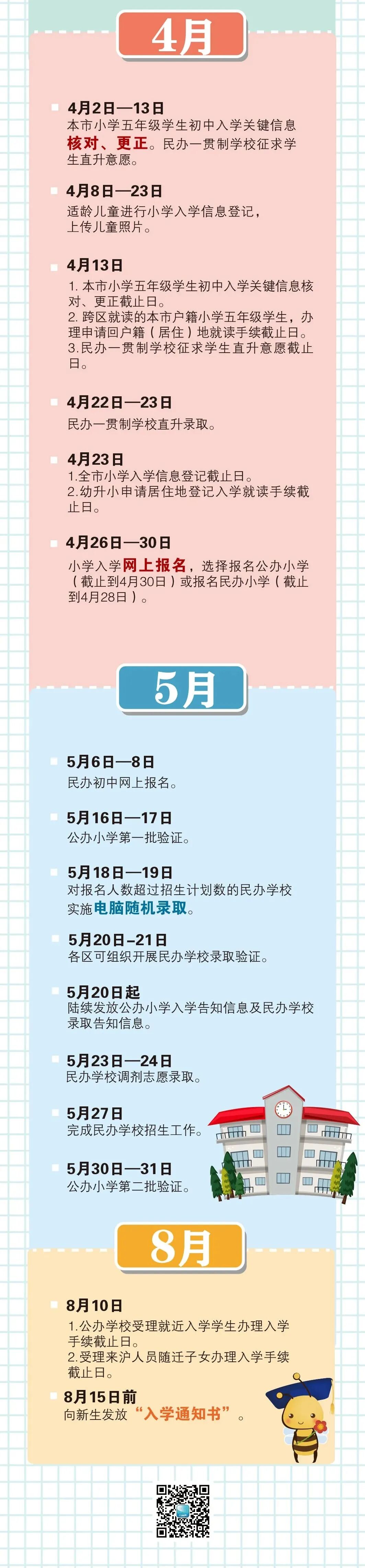 4月22日-4月23日,本市14个区开展民办一贯制学校小升初直升录取工作(静安区、虹口区没有民办九年一贯制学校)。