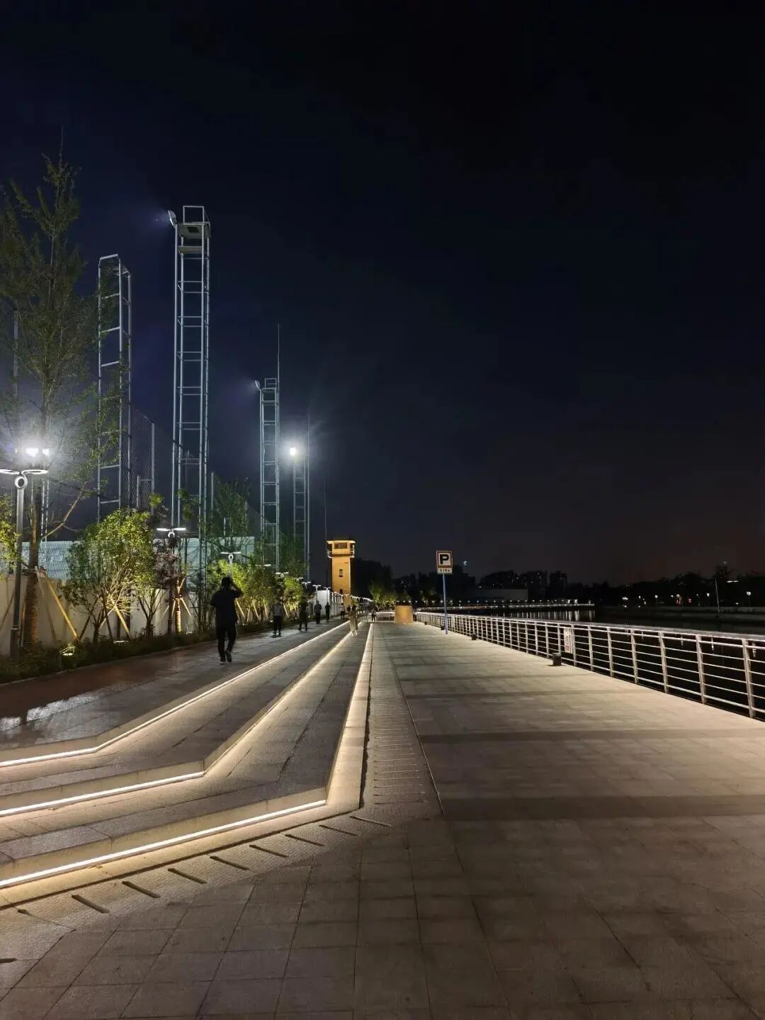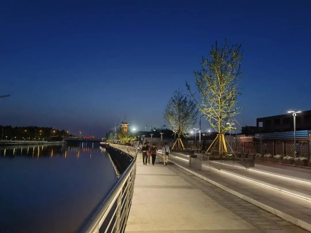 小编看到,滨河步道沿途设有公共卫生间、休闲座椅等配套设施,整体环境干净整洁。夜幕降临,华灯初上,霓虹树影与河水交相辉映,夏夜的晚风扑面而来,市民们在步道上休闲、锻炼,感受着江畔的惬意时光。
